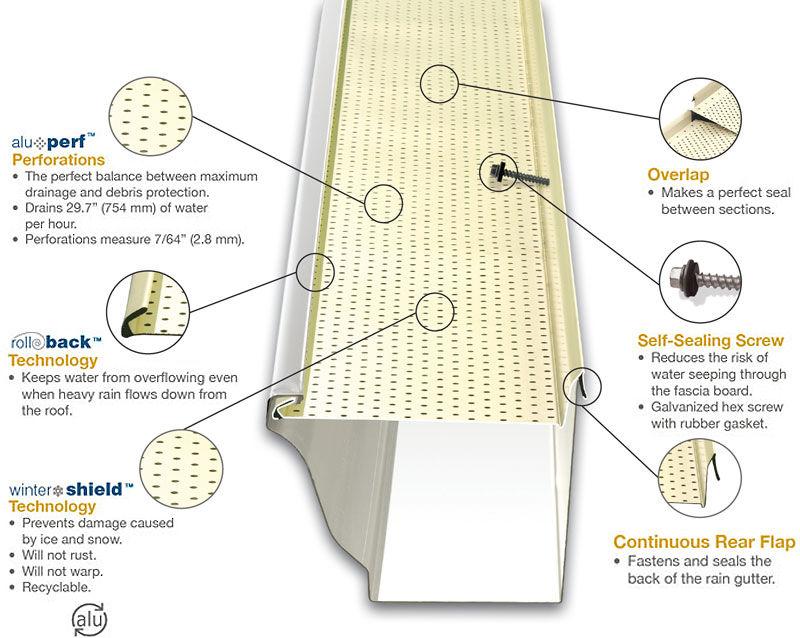 For both existing gutters and new installs, we offer screens from a Canadian company called Alu-Rex. These screens offer a good blend of protection vs function. The company also offers a 40 year no-clog warranty.